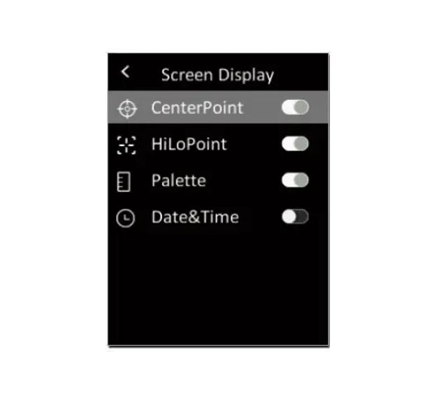 Trong menu, nhấn nhanh nút Lên / Xuống để chọn Dấu nhiệt độ, sau đó nhấn nhanh nút OK để vào giao diện đánh dấu nhiệt độ. Trung tâm PoinU Hi / Lo PoinUPalette / Date & T ime có thể được đặt trong giao diện này chọn Center Point, sau đó nhấn nút OK để bật / tắt chức năng này.