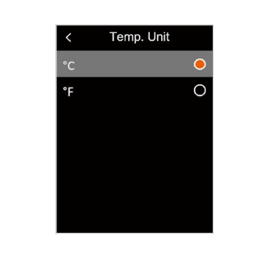 Trong menu, nhấn nhanh nút Lên / Xuống để chọn Cài đặt, sau đó nhấn nhanh nút OK để vào menu con. Trong menu con, nhấn nhanh nút Lên / Xuống để chọn Đơn vị nhiệt độ và nhấn nhanh nút OK để chuyển đổi giữa · c / ”F.