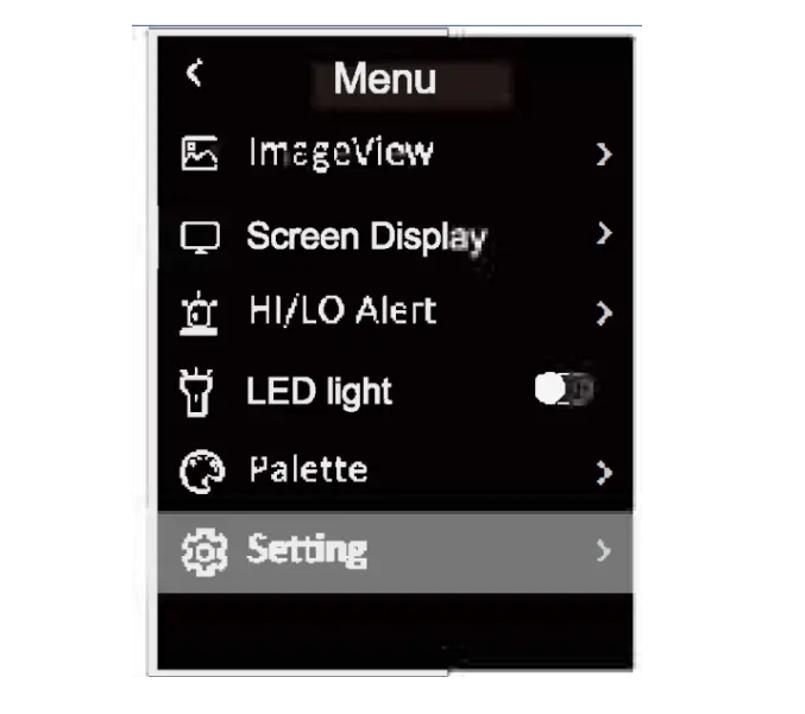 Trong menu, nhấn nhanh nút Lên / Xuống để chọn Bảng màu, sau đó nhấn nhanh nút OK để vào giao diện chọn bảng màu. Nhấn nhanh nút Lên / Xuống để lướt qua sáu bảng màu: Rainbow, Iron, White Hot, Black Hot, Rainbow HC, Lava và nhấn nhanh nút OK để xác nhận bảng màu đã chọn.